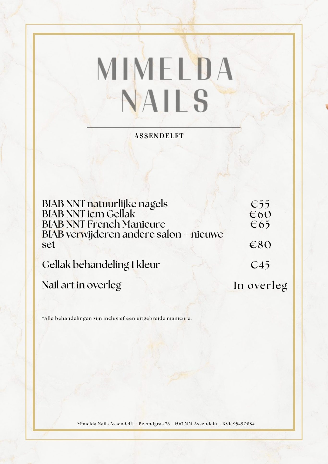 Hieronder is de prijslijst van de salon, mocht je er niet uit komen mag je altijd contact opnemen.